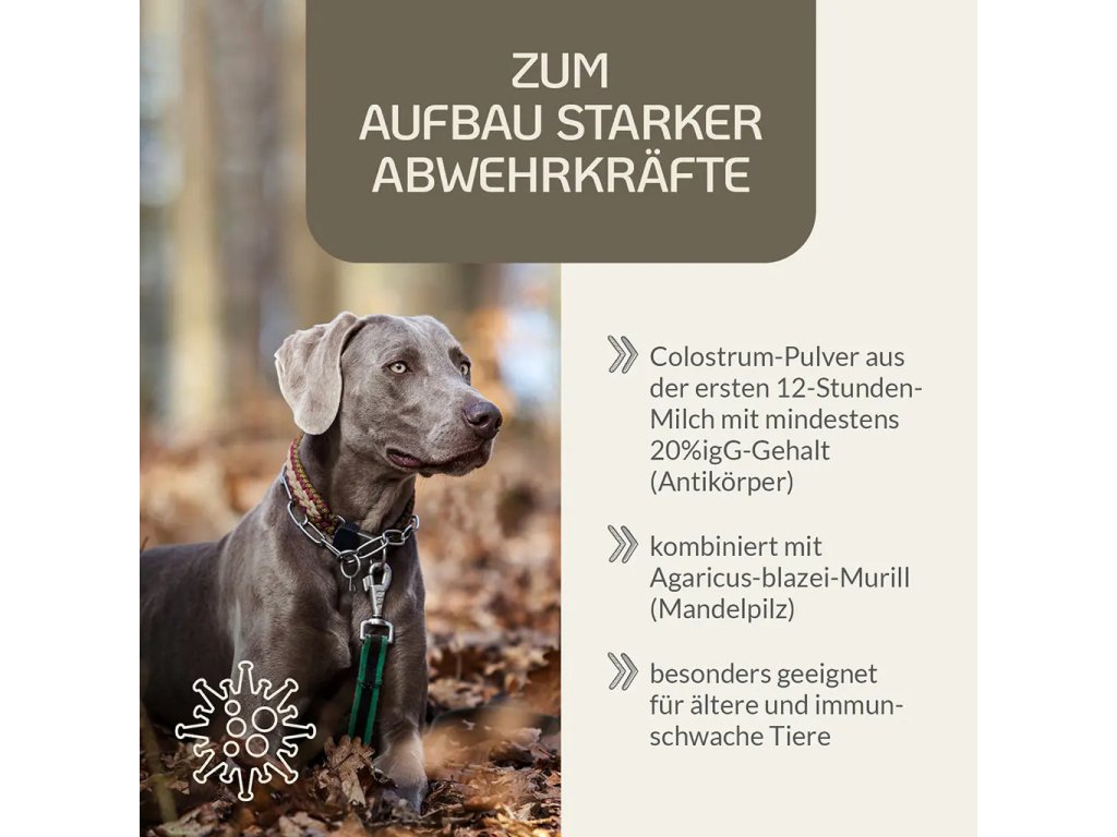 Kolostrum pro psy je vyvážený doplněk stravy, který je ideální pro psy všech plemen a velikostí. Obsahuje přírodní živiny, které mohou vašemu psovi pomoci udržet jeho vitalitu. Díky svému přírodnímu složení neobsahuje žádné umělé přísady.