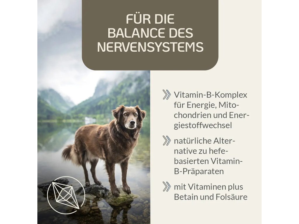 Vitaminy skupiny B patří do skupiny vitaminů rozpustných ve vodě. Psí tělo je nedokáže dlouho skladovat a jejich přebytek vylučuje močí. Proto je důležité, aby byly tyto vitaminy pravidelně dodávány prostřednictvím krmiva. Jednou z výjimek je vitamin B12, který je jediným vitaminem skupiny B, který se může v těle dlouhodobě skladovat a nachází se především v živočišných potravinách.