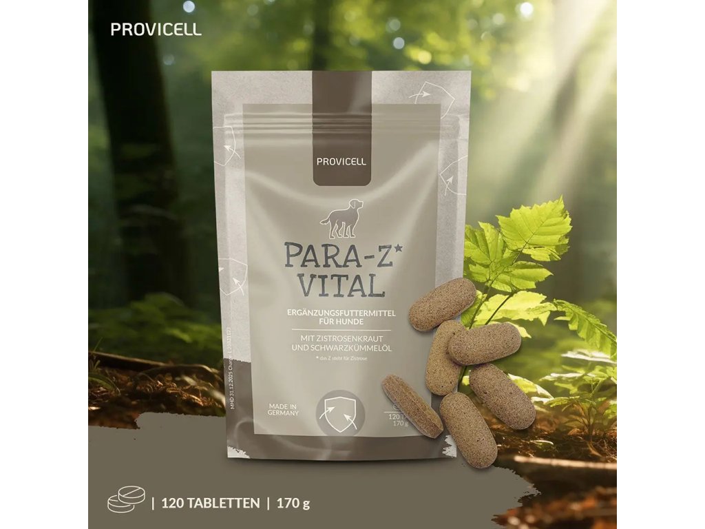 Zejména v teplých měsících se váš pes rád pohybuje venku, ať už v lese, na louce nebo v parku. Para-Z* Vital je pro toto roční období cenným doplňkem stravy.