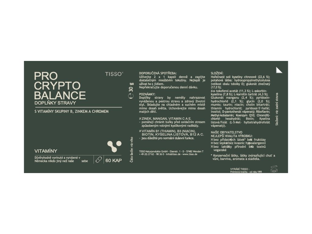 Pro Krypto Balance dodává tělu optimálně dávkované vitaminy skupiny B, zinek, mangan a chrom, zejména v případech zvýšené potřeby. Výživový komplex navíc obsahuje velké množství vitaminu C a vitaminu E.