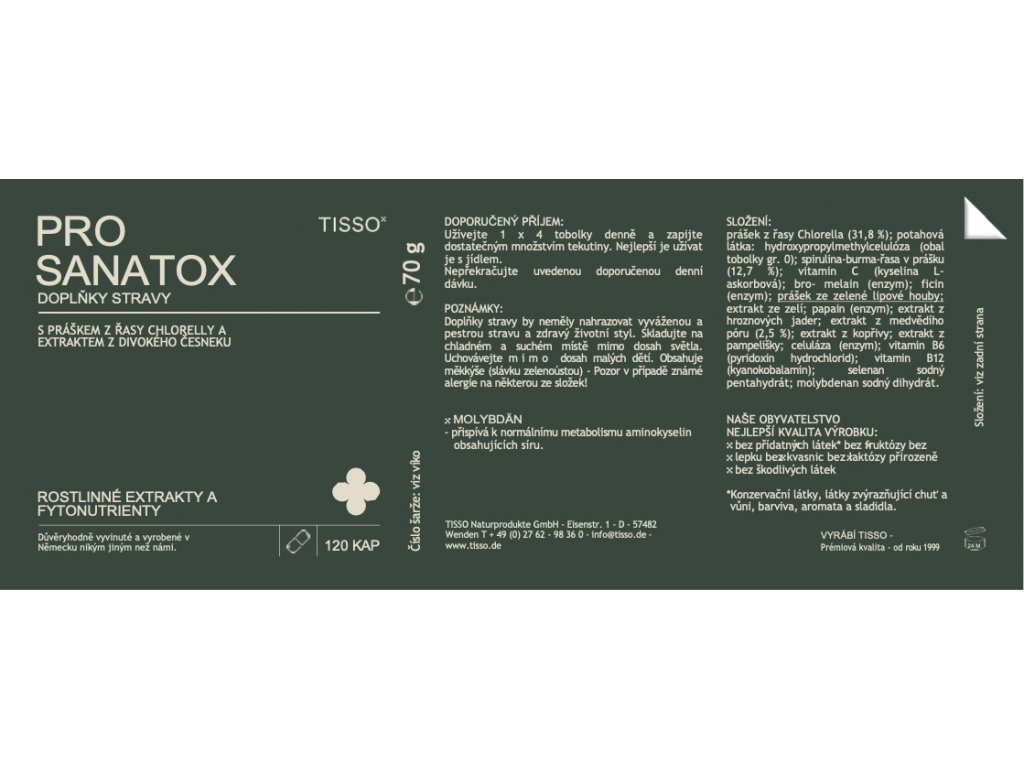 With algae powder, sulfurous plant substances and more: Pro Sanatox provides a unique combination of algae, sulfurous plant substances, vitamins, trace elements and enzymes.