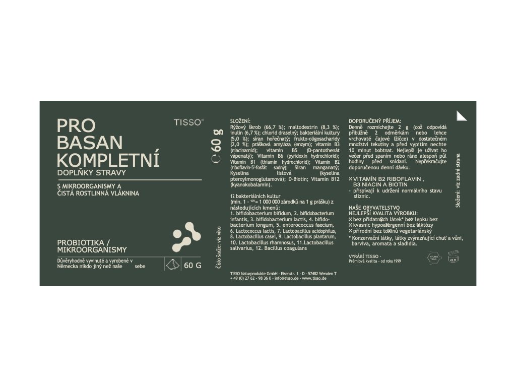 S 12 bakteriálními kulturami, čistou rostlinnou vlákninou a vitamíny skupiny B: Pro Basan Complete doplňuje náš základní produkt Pro Basan o dalších šest bakteriálních kmenů a všech osm vitaminů skupiny B - včetně riboflavinu (B2), niacinu (B3) a biotinu (B7) pro cílenou podporu sliznic.